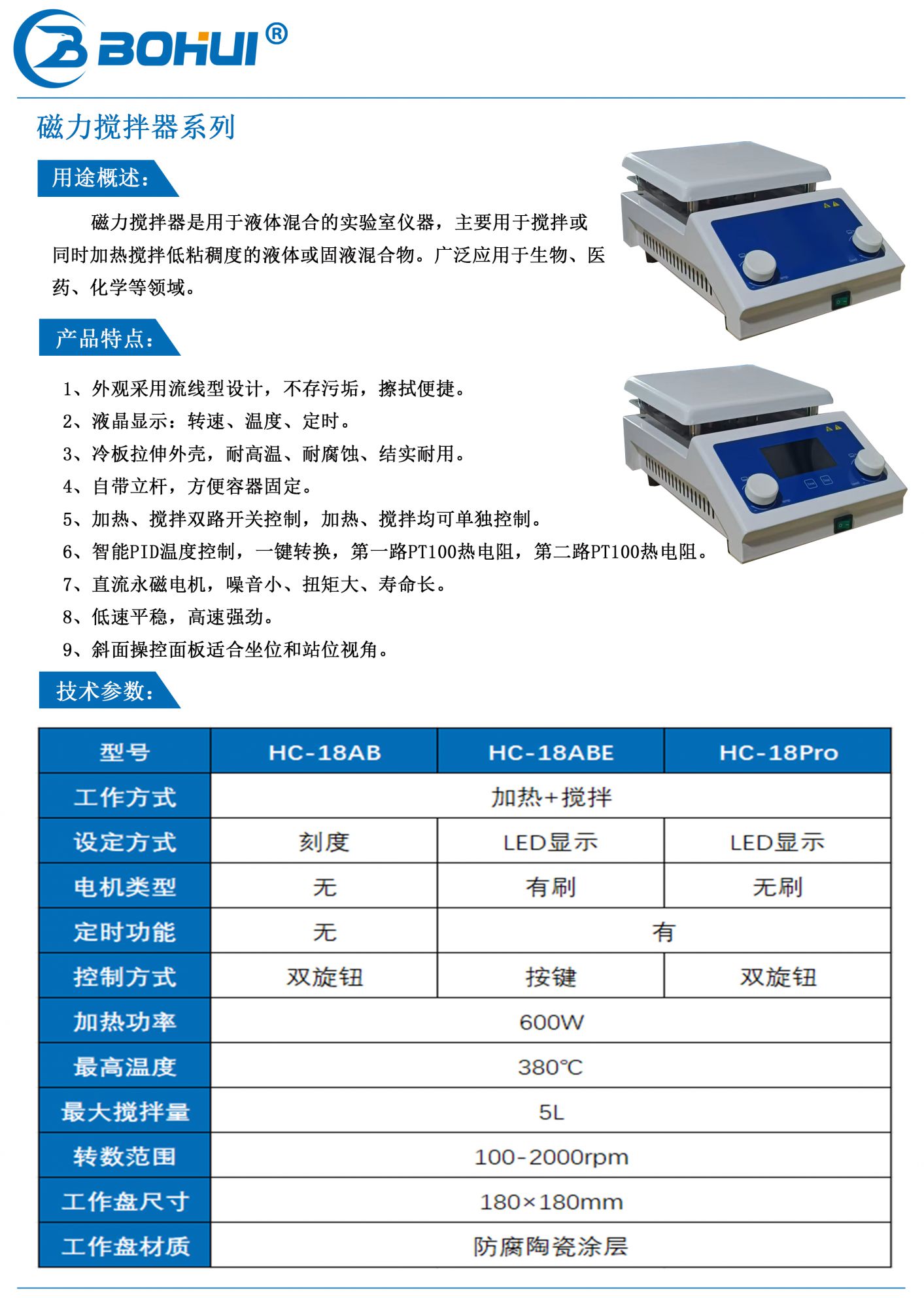 1、加热功率和搅拌速度无极可调。